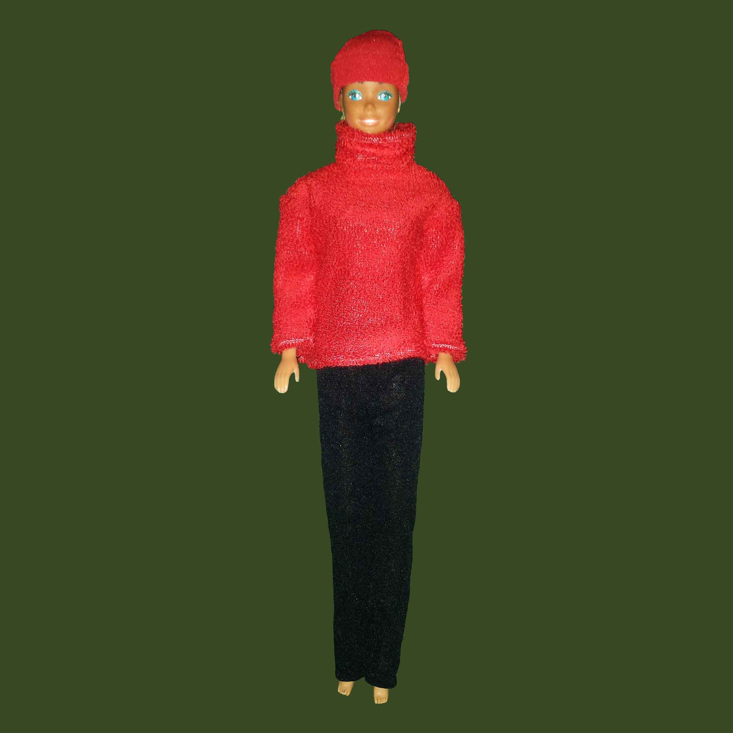 Ref.: BTP-2015-0007. Conjunto de tres piezas con gorro y jersey rojo y pantalón negro.
