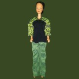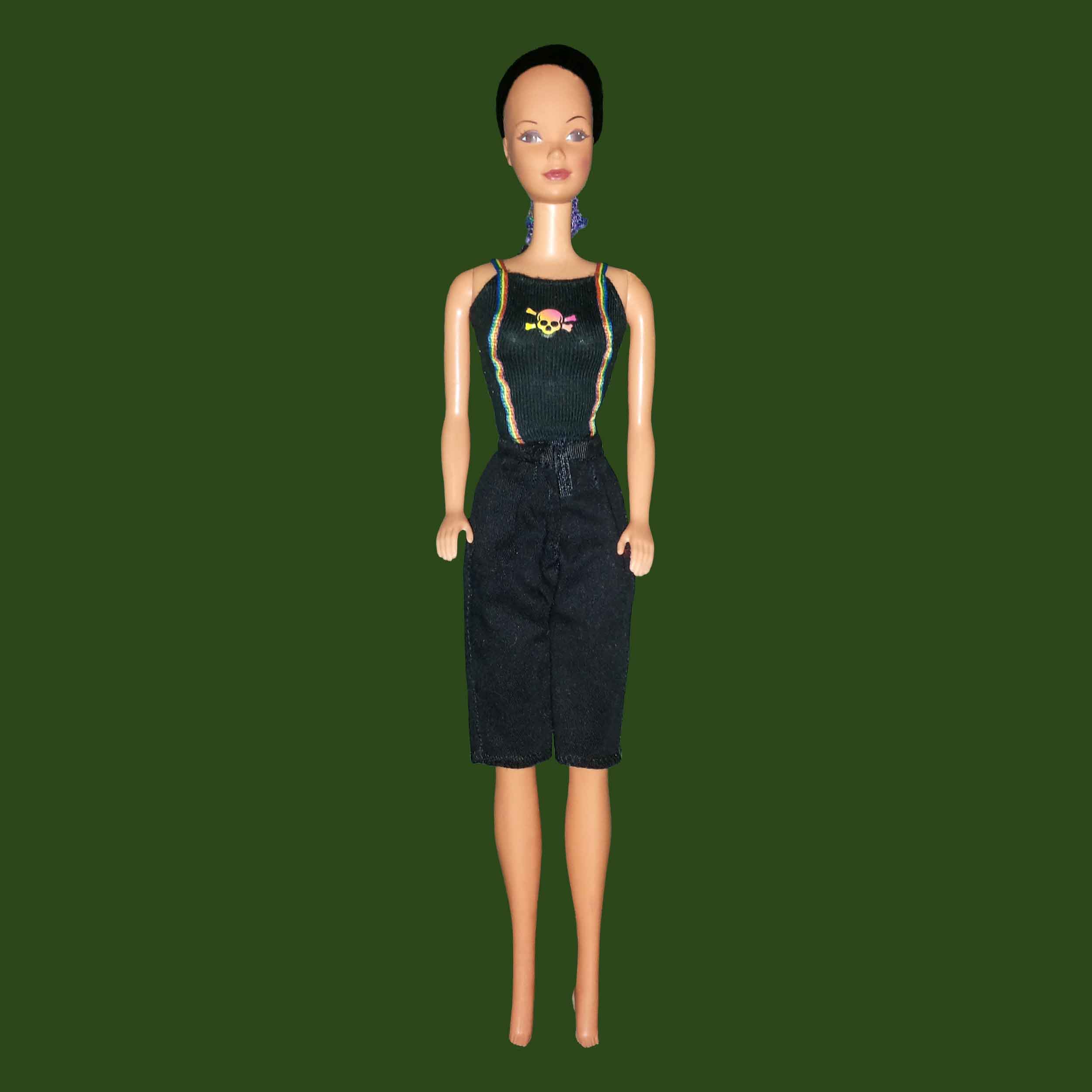 Conjunto de dos piezas con pantalón pirata y top negros.