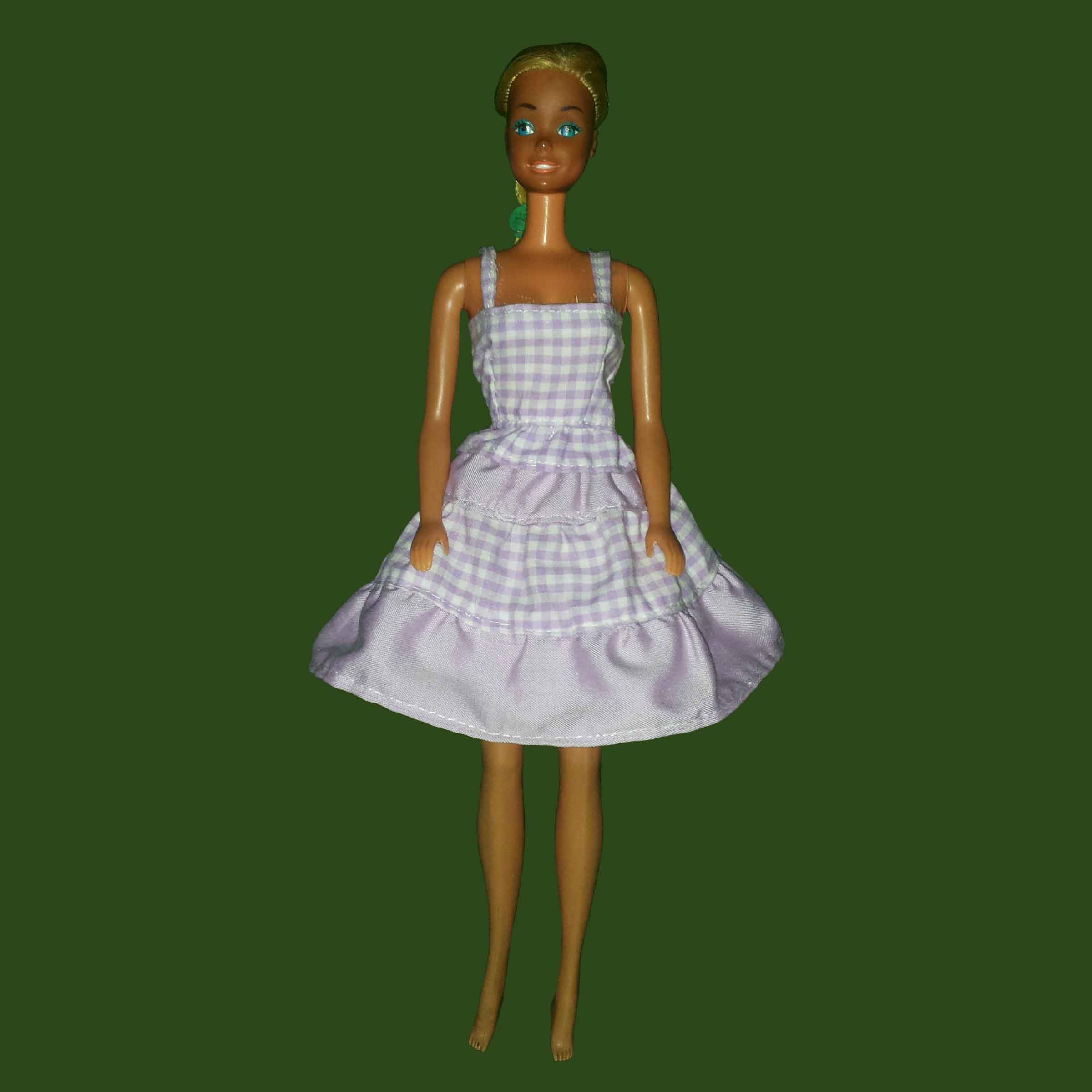 Vestido de dos piezas en algodón a cuadros lila y blanco