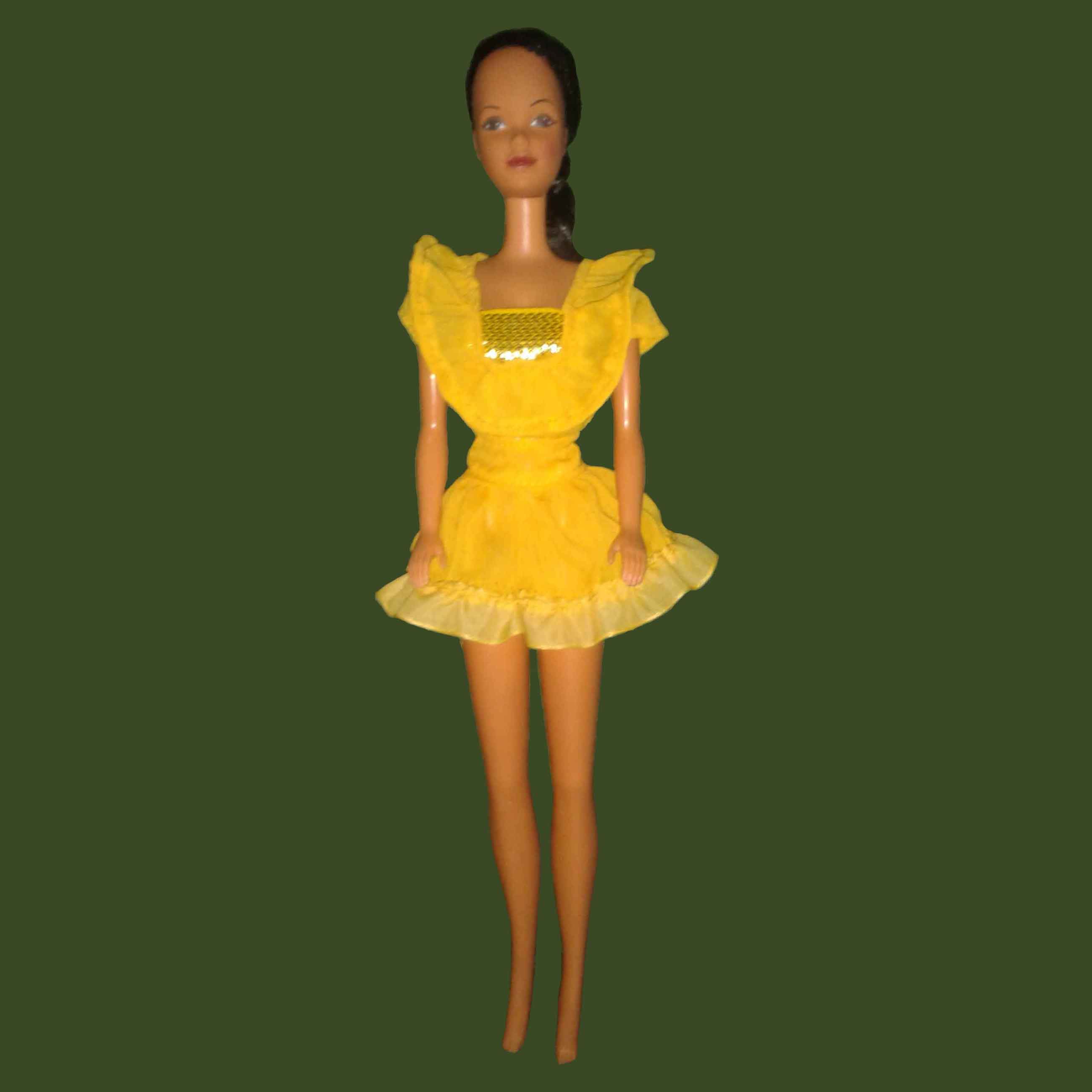Ref.: BVC-2014-0007. Vestido mini de dos piezas en organza amarillo con aplique en el escote.