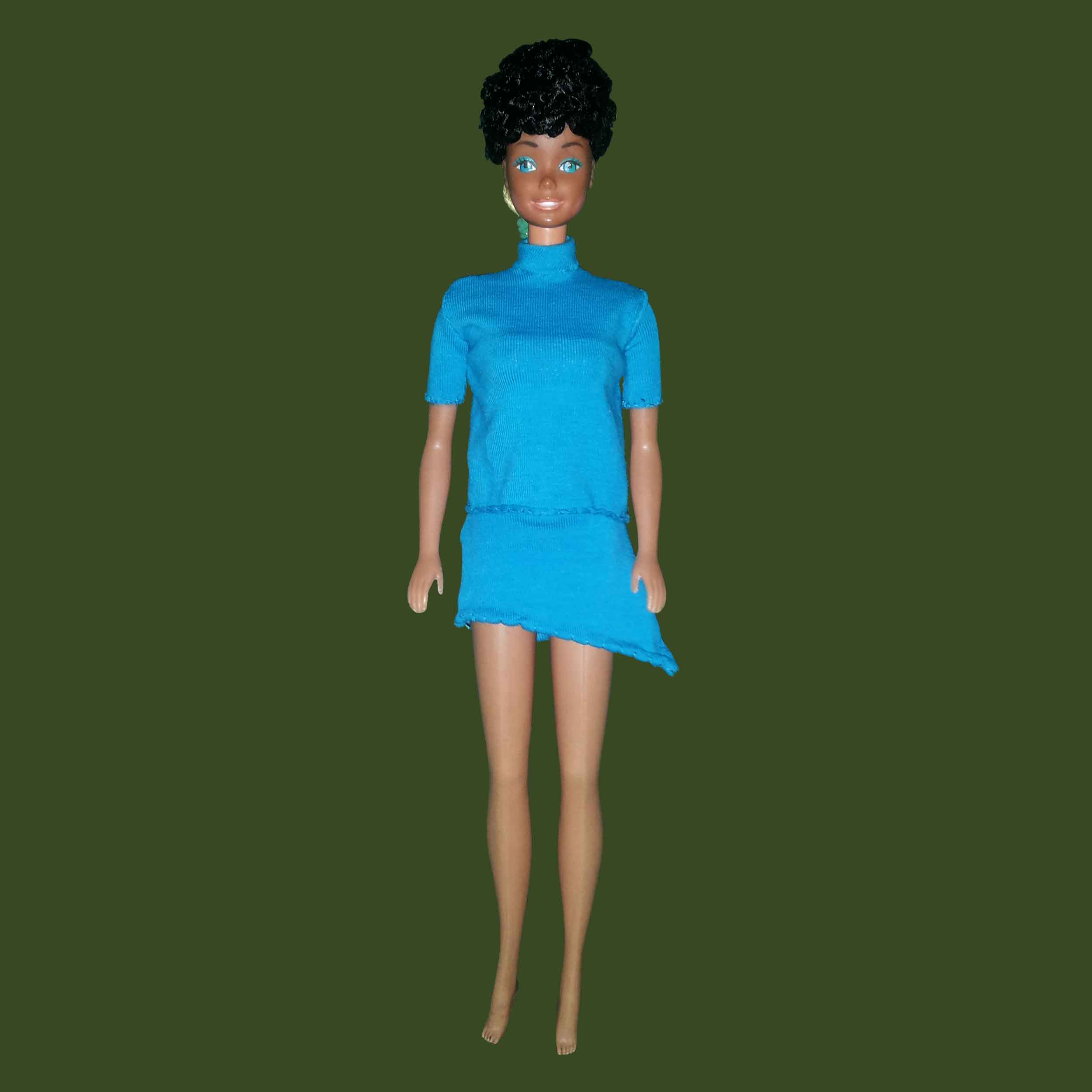 Ref.: BVC-2014-0017. Vestido de dos piezas en lycra azul combinado con gorro negro.