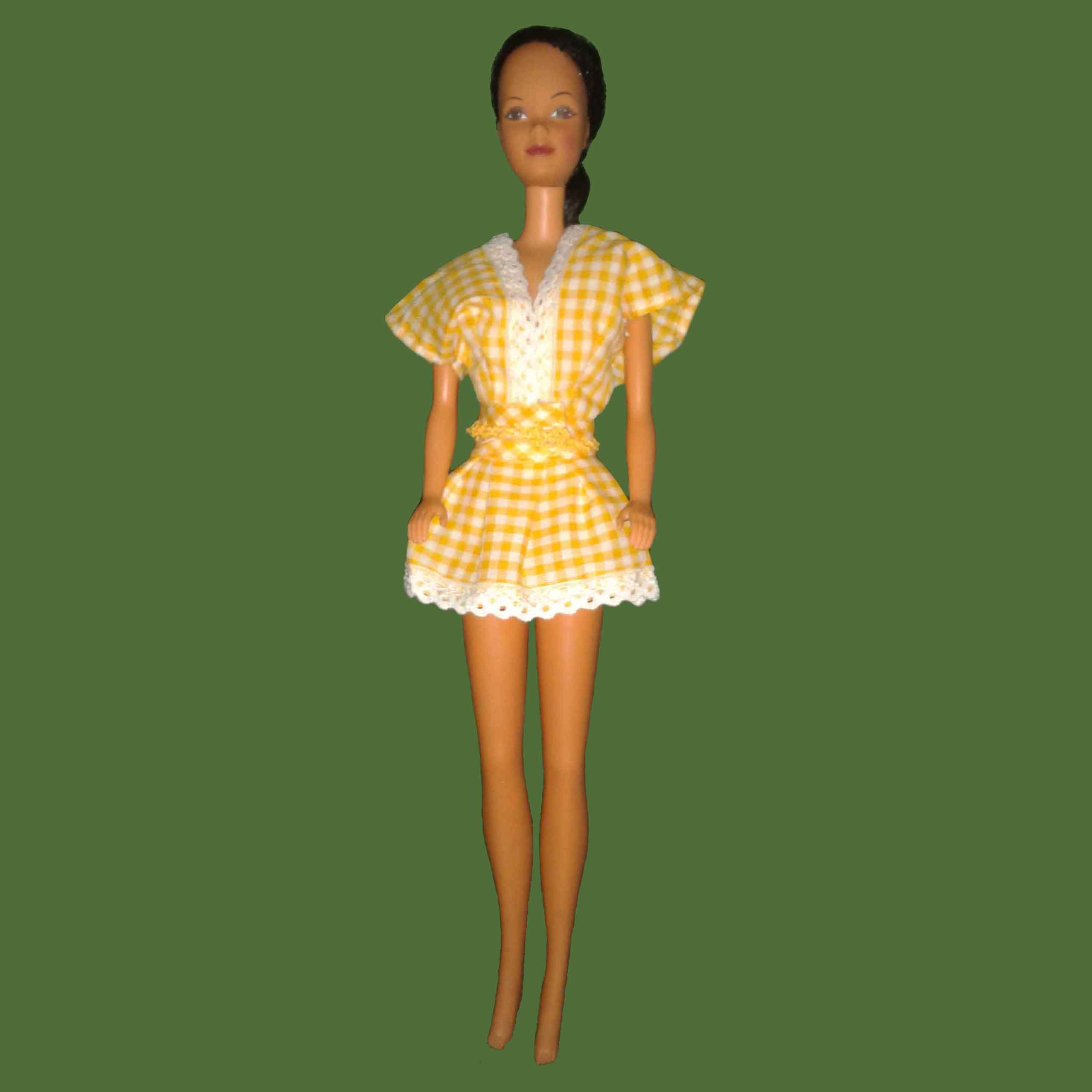 Ref.: BVC-2014-0027. Vestido mini de dos piezas en algodón con estampado a cuadros en amarillo y blanco.