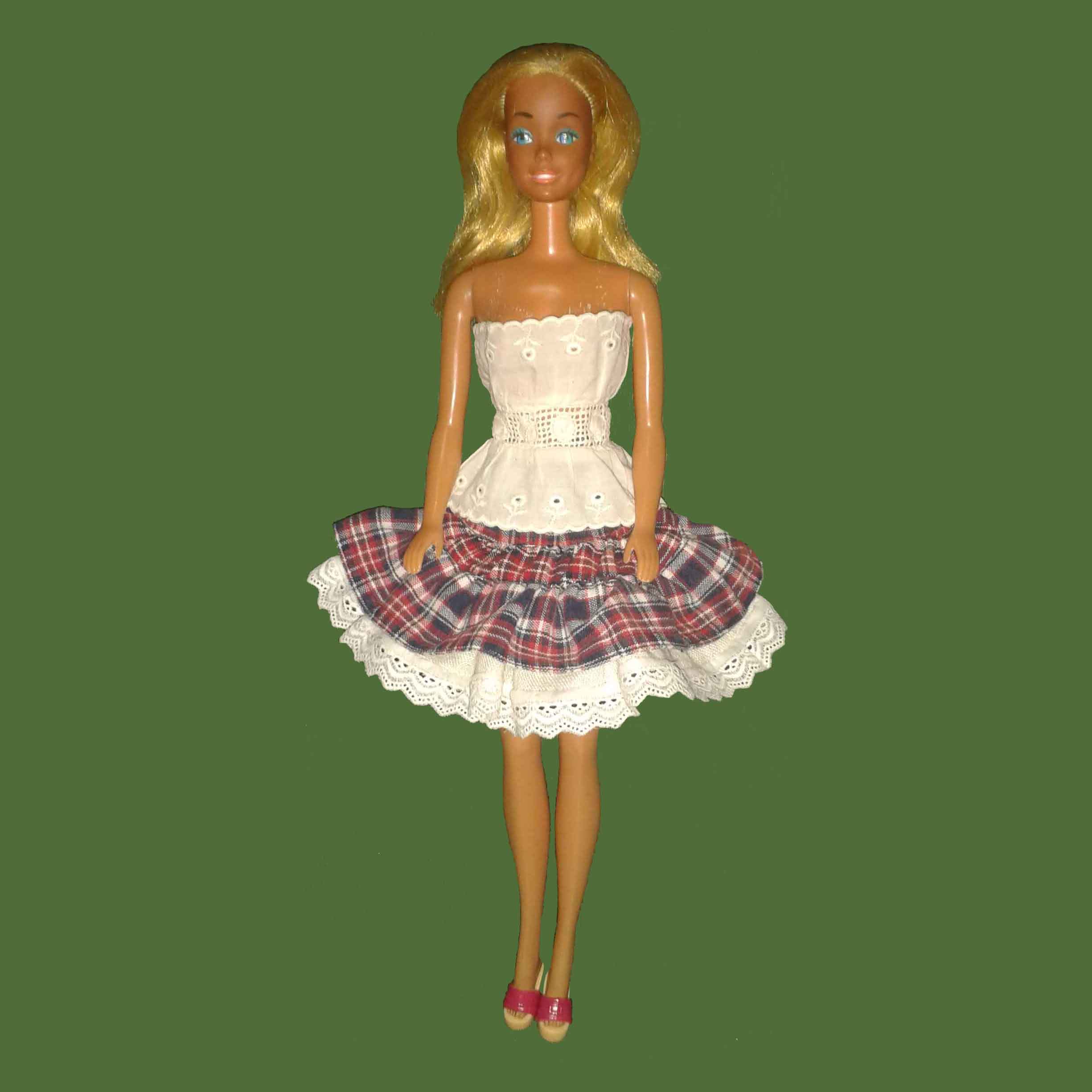Vestido en algodón de dos piezas blanco en la parte superior y con estampados a cuadros escoceses. Zapatos NO incluidos.