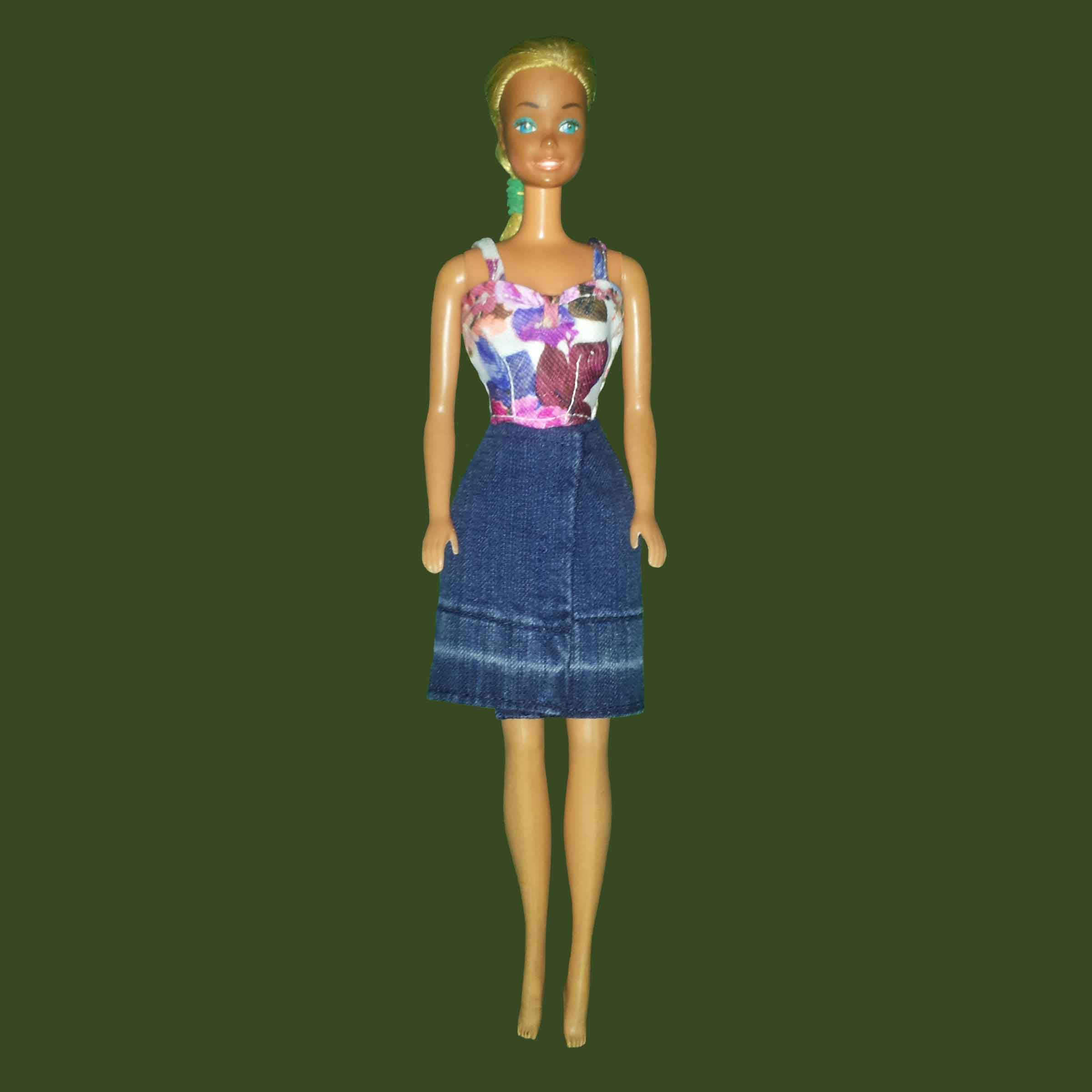 Ref.: BVC-2015-0003. Conjunto de dos piezas con falda vaquera y top blanco en estampado floral.