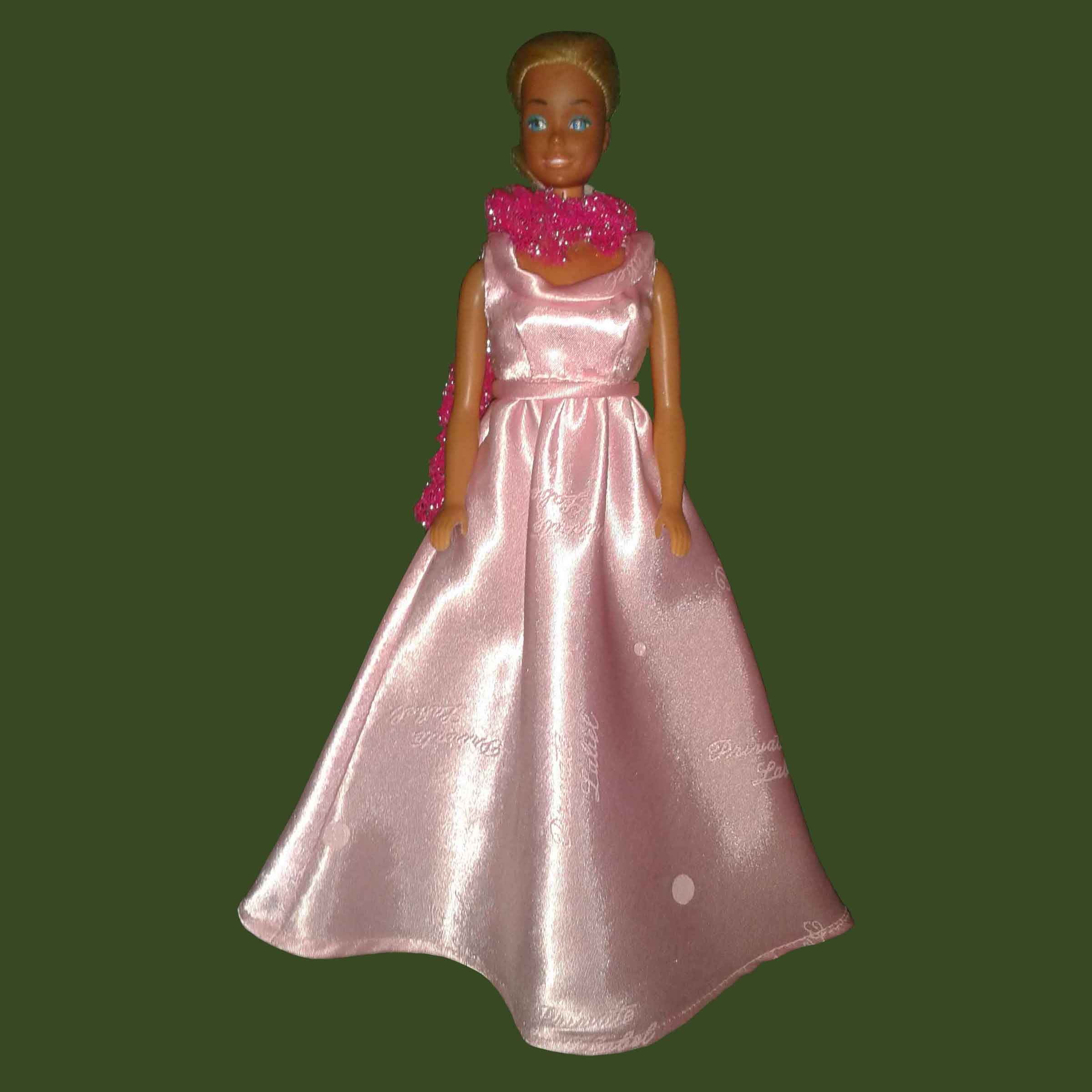 Ref.: BVF-2014-0009. Vestido largo en raso de color rosa complementado con fular fucsia.