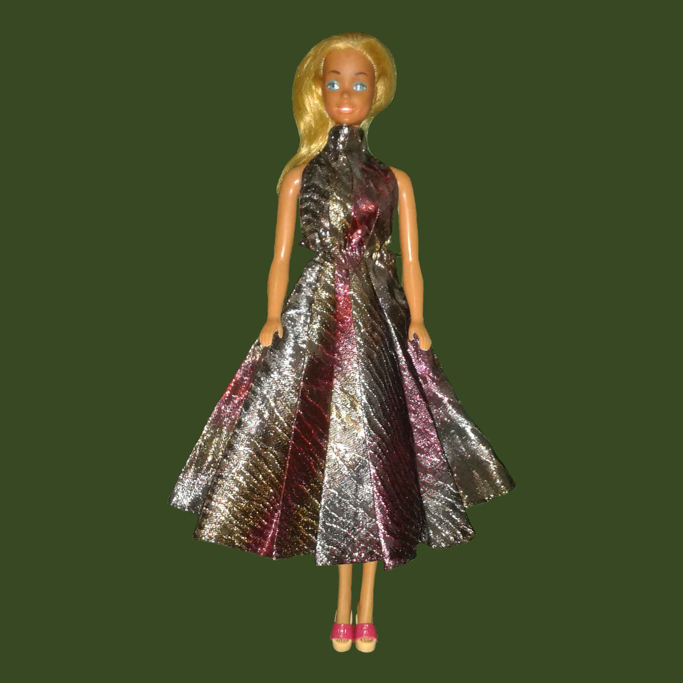 Ref.: BVF-2014-0018. Vestido de fiesta en brillos tornasolados en tonos rosa, plateado y dorado. Zapatos NO incluidos.