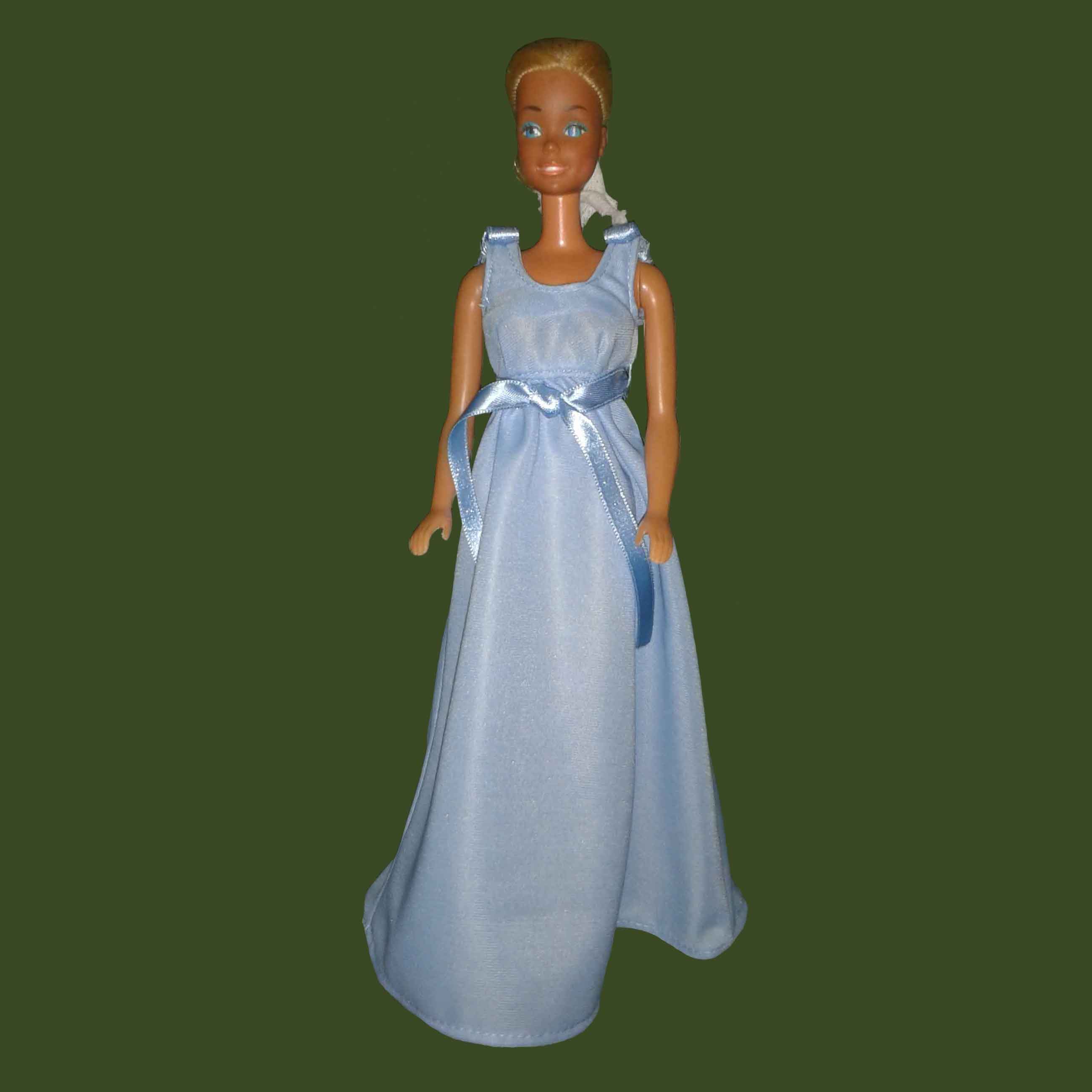 Ref.: BVF-2014-0019. Vestido largo en punto de seda azul celeste con cinturón en raso del mismo color.