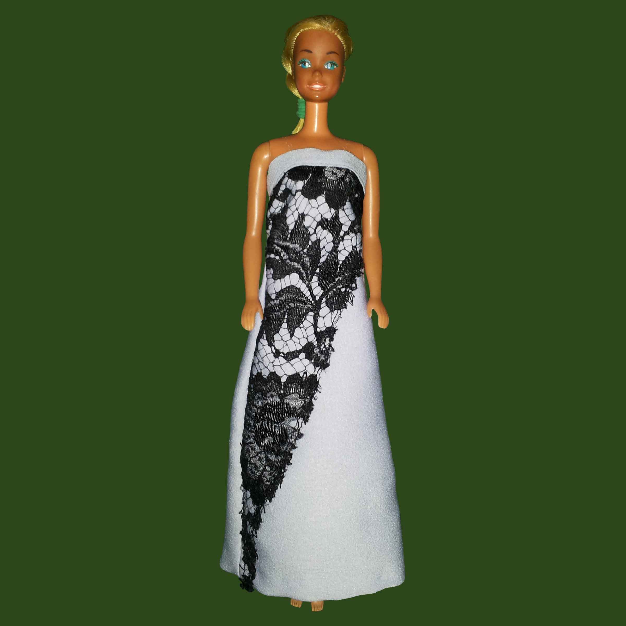 Ref.: BVF-2014-0031. Vestido largo en seda azul claro con detalle en encaje negro.