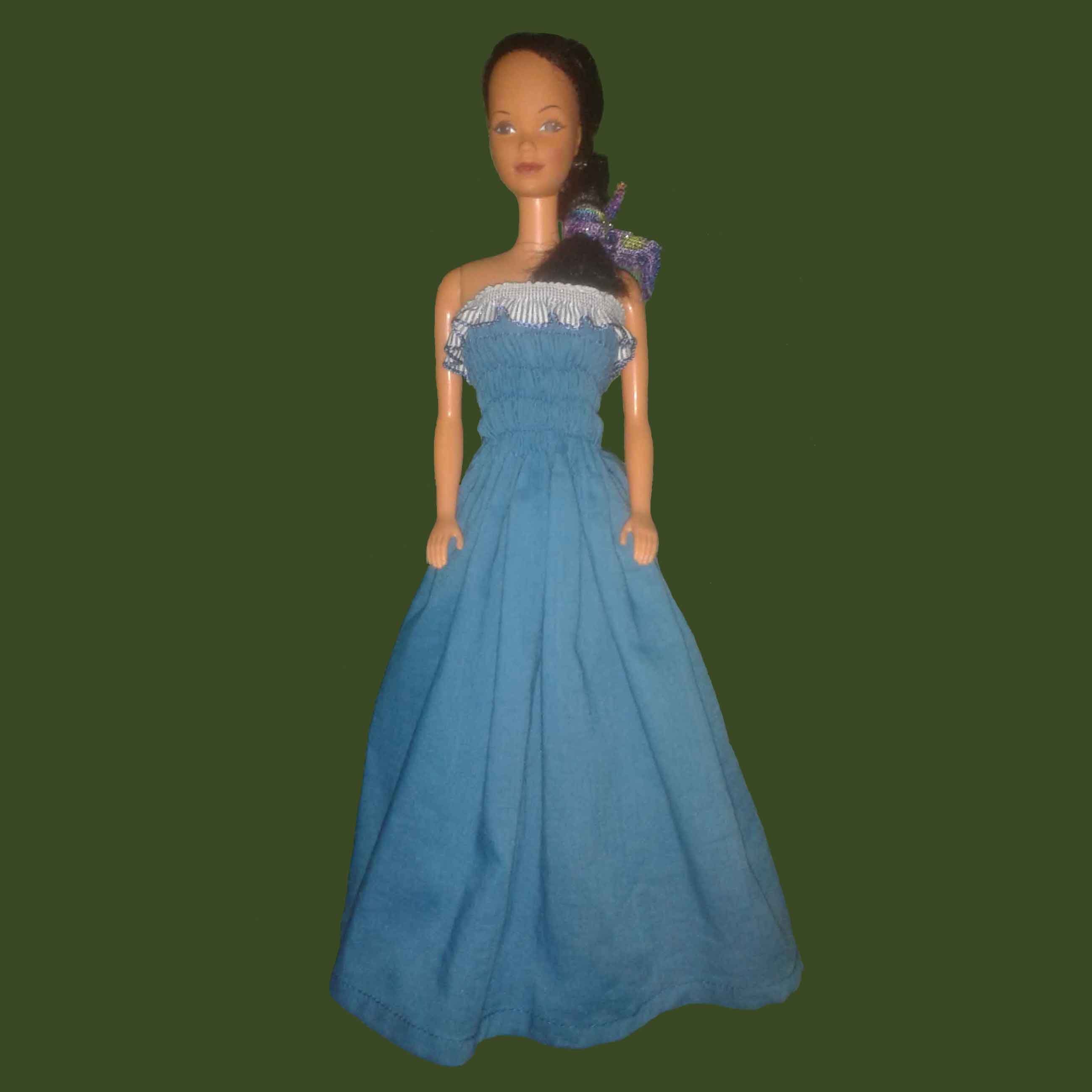 Ref.: BVF-2014-0045. Vestido largo en algodón azul con borde en el escote a rayas.